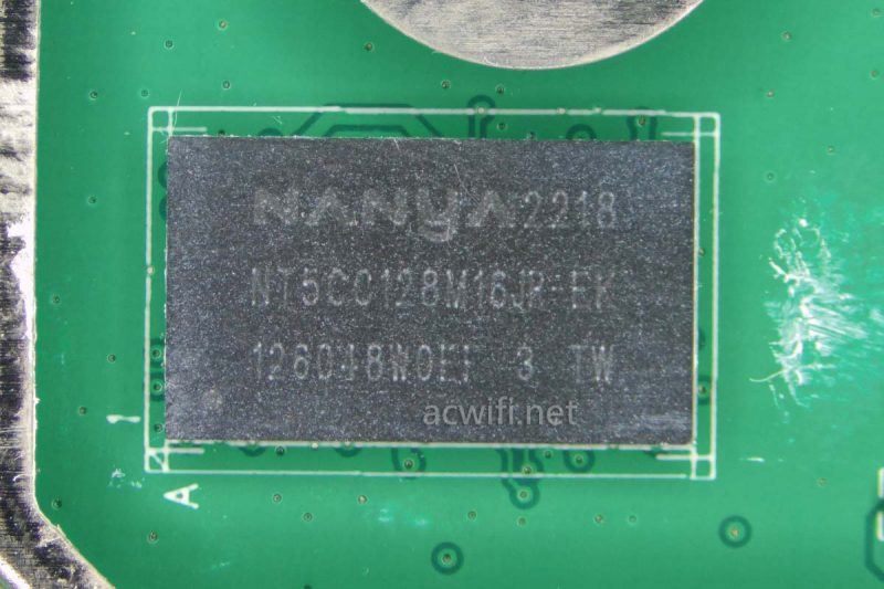 CPU旁边的内存芯片,型号是南亚的NT5CC128M16JR-EK,DDR3L,容量256MB: