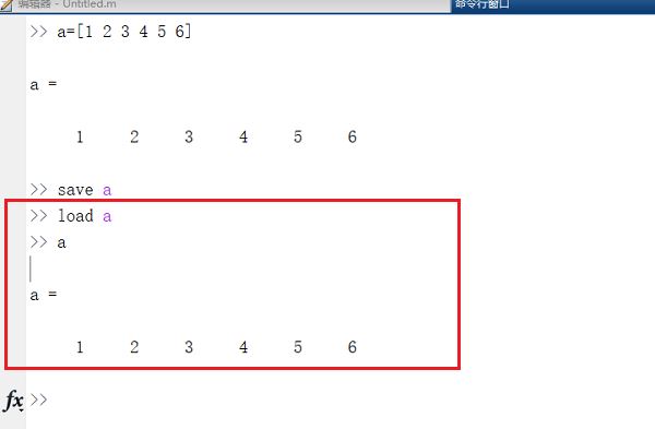 使用“load a”,读取a.mat文件数据,读取之后,就可以直接使用mat文件里面的a变量,如下图所示: