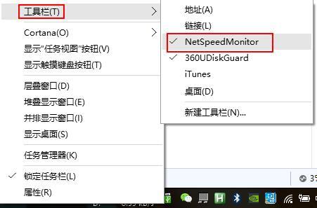 打开之后如果发现状态栏并没有出现变化。这个时候应该鼠标右键点击状态栏的空白处,然后在“工具栏”中将netspeedmonitor勾选。