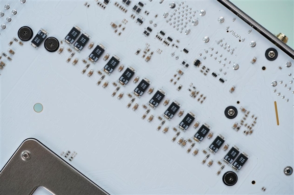 该主板配置了4槽合金加固DDR5内存插槽,使用了30μm加厚镀金触点,支持XMP 7600MT/s双通道高频,超频可达8200+MT/s。